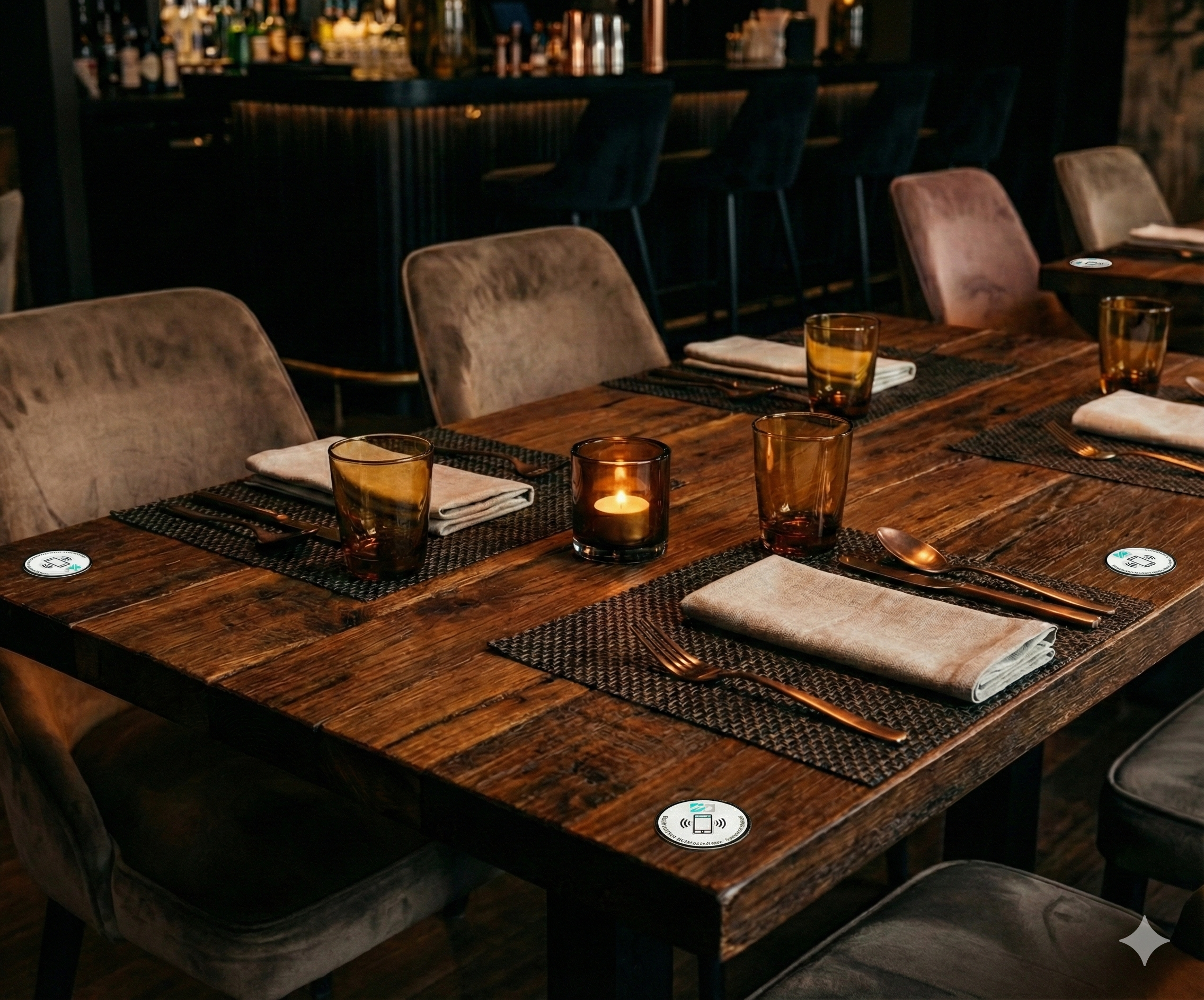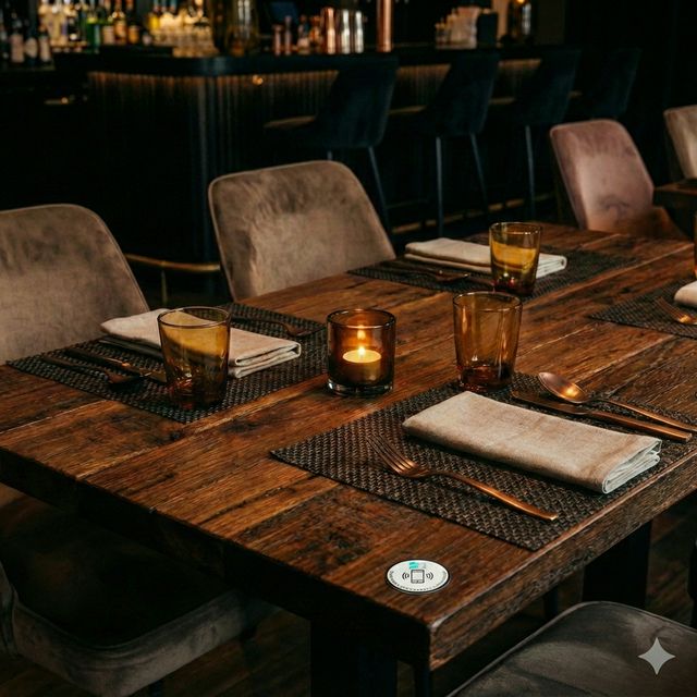 Discrète et élégante, notre pastille NFC s'intègre parfaitement à l'ambiance de votre établissement. Un simple tap du téléphone, et l'expérience BillMaster s'ouvre instantanément — aucune application à télécharger.