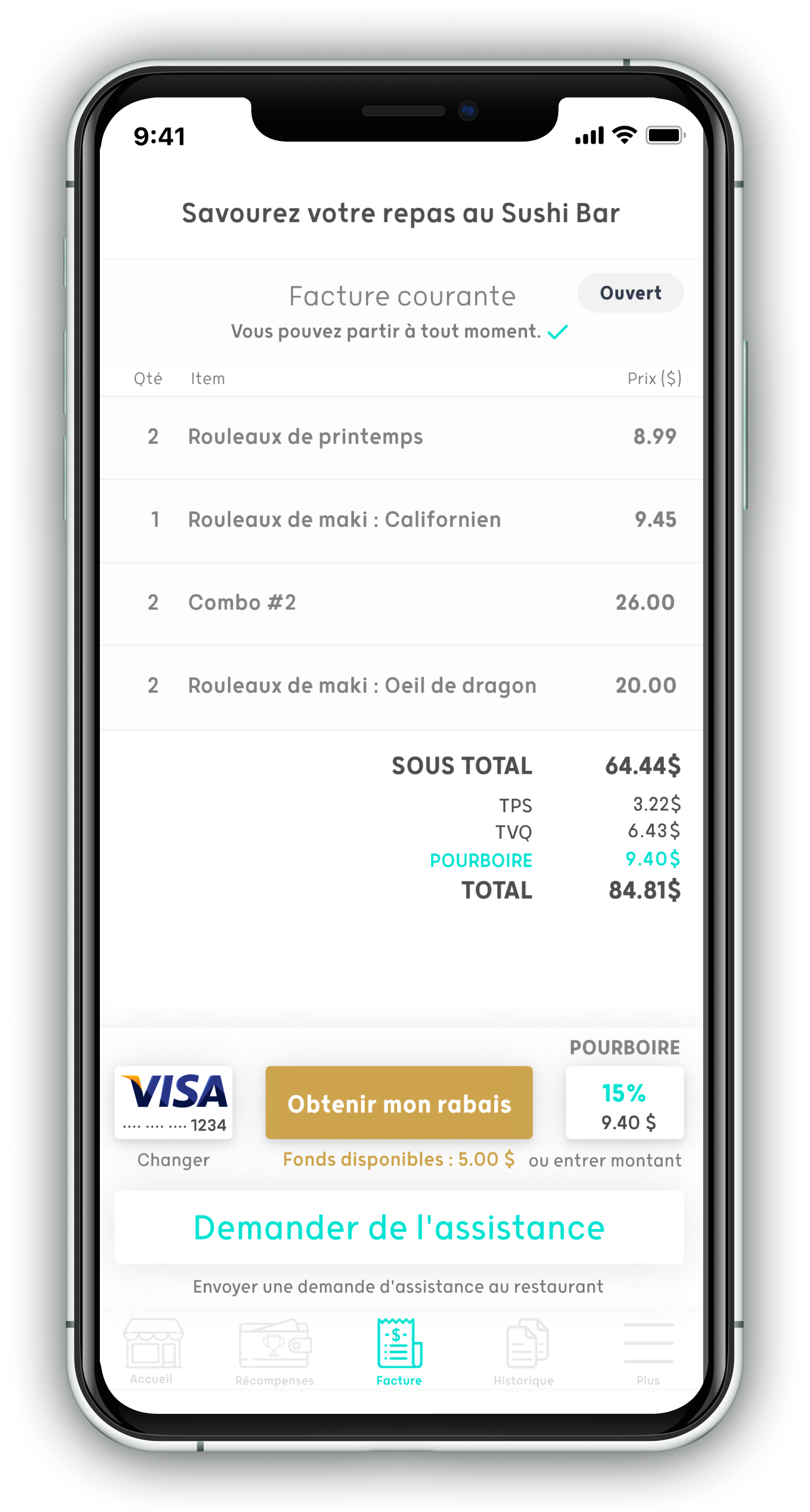 - Sauvez du temps ! Fini de sortir votre porte-monnaie et de manipuler des machines de paiements et d’entrer le tip manuellement.