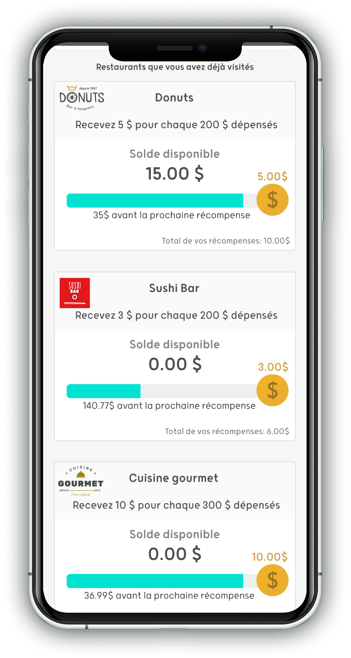 Recevez des récompenses en argent lorsque vous visitez vos restaurants favoris !